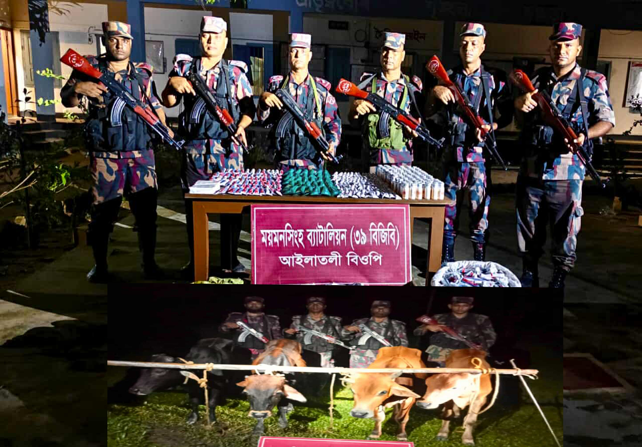 ময়মনসিংহ ব্যাটালিয়ন (৩৯ বিজিবি)-এর অধিনায়ক লেফটেন্যান্ট কর্নেল মেহেদি হাসান জানান, গোপন সংবাদের ভিত্তিতে নালিতাবাড়ী ও হালুয়াঘাট বিওপির টহল দল অভিযানে নামে। এ সময় ৪ হাজার ৮২৮ পিস ভারতীয় বিভিন্ন প্রকারের ঔষধ, ২৩ বোতল ভারতীয় মদ এবং ৭টি ভারতীয় গরু আটক করা হয়। তবে অভিযানের সময় চোরাকারবারীরা বিজিবির উপস্থিতি টের পেয়ে পালিয়ে যায়।