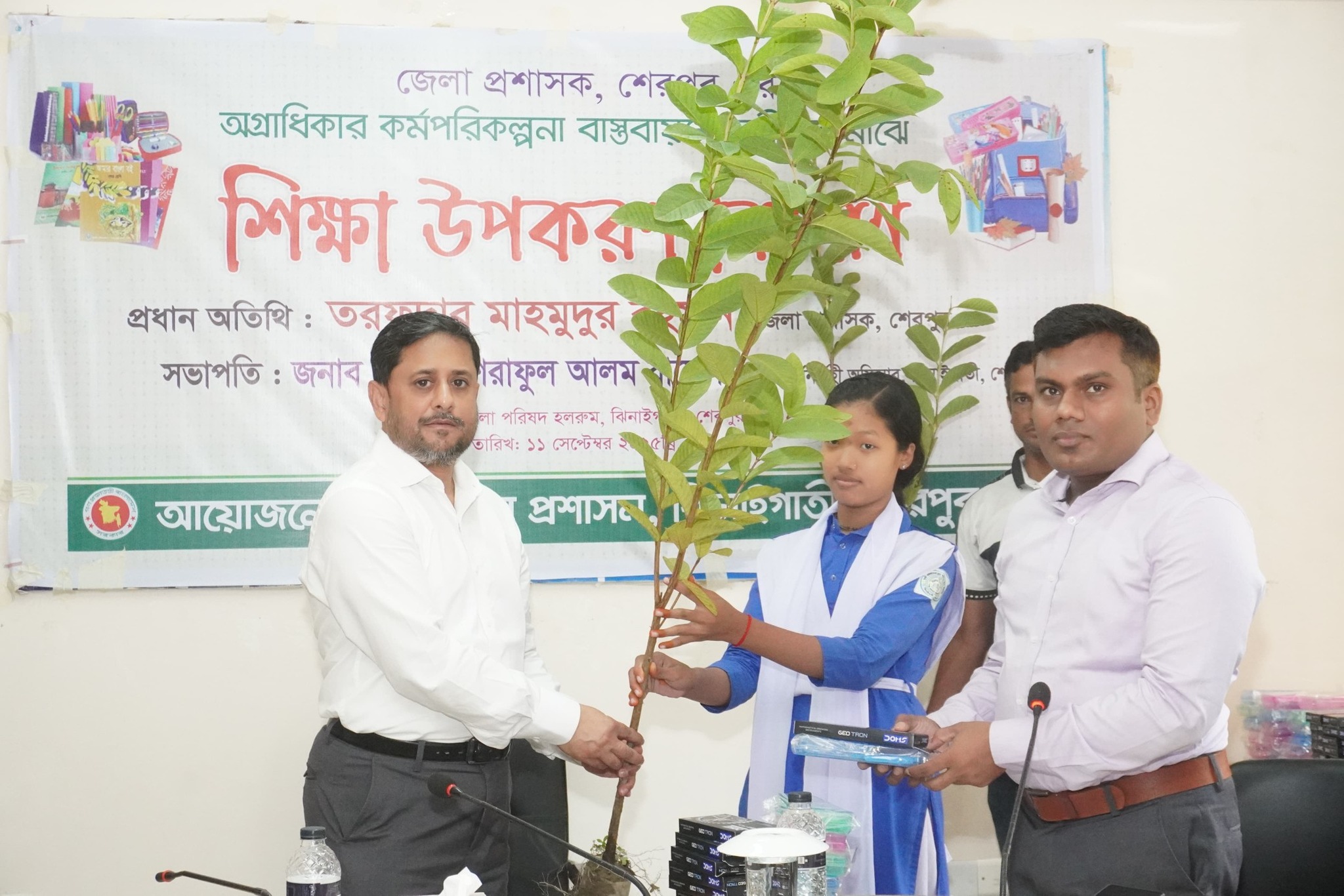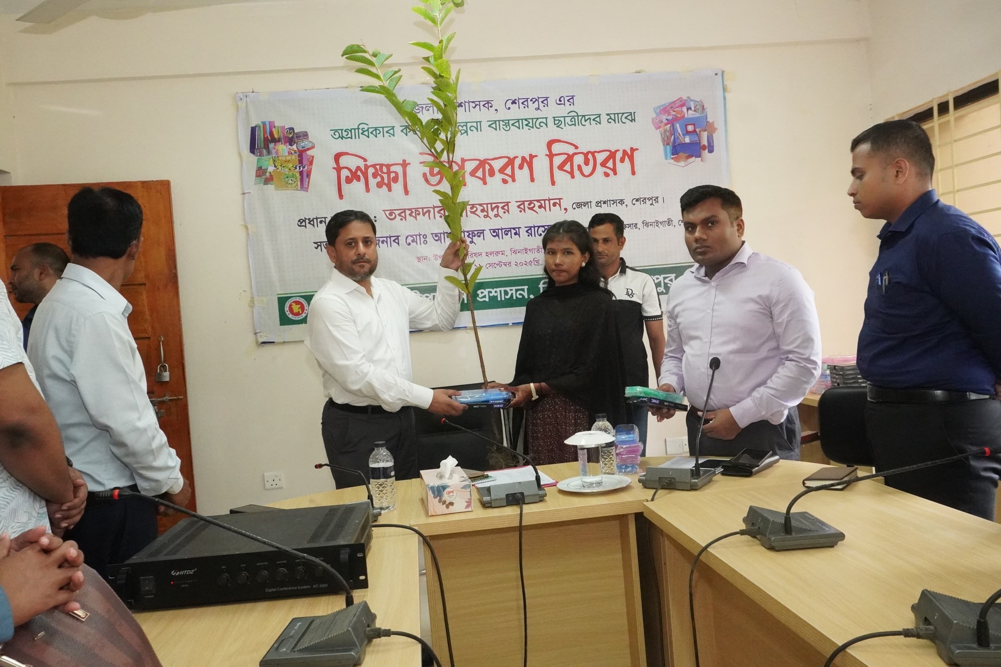 পরিদর্শন শেষে জেলা প্রশাসক উপজেলা পরিষদ মিলনায়তনে আয়োজিত শিক্ষা উপকরণ বিতরণ কর্মসূচিতে প্রধান অতিথি হিসেবে যোগ দেন। জেলা প্রশাসকের অগ্রাধিকার কর্মপরিকল্পনার অংশ হিসেবে এ কার্যক্রম অনুষ্ঠিত হয়। অনুষ্ঠানে শিক্ষার্থীদের হাতে গাছের চারা ও বিভিন্ন শিক্ষা উপকরণ তুলে দেন তিনি।
