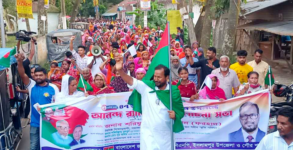 বুধবার বিকেলে ইসলামপুর সরকারি বিশ্ববিদ্যালয় কলেজ মাঠ থেকে এক বর্ণাঢ্য শোভাযাত্রার আয়োজন করা হয়। কুলকান্দি ইউনিয়নের কৃতি সন্তান, বর্ষীয়ান রাজনীতিবিদ ও বিএনপি স্থায়ী কমিটির সদস্য নজরুল ইসলাম খানের ছোট ভাই, বিশিষ্ট ব্যবসায়ী, শিক্ষানুরাগী, সমাজসেবক এবং যুবসমাজের অহংকার শরিফুল ইসলাম খান ফরহাদের নেতৃত্বে মিছিলটি শহরের প্রধান সড়ক প্রদক্ষিণ শেষে ঐতিহাসিক বটতলা চত্বরে এক সমাবেশে মিলিত হয়।