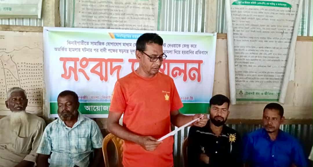 ঝিনাইগাতীতে মামলা দিয়ে হয়রানির প্রতিবাদে সংবাদ সম্মেলন