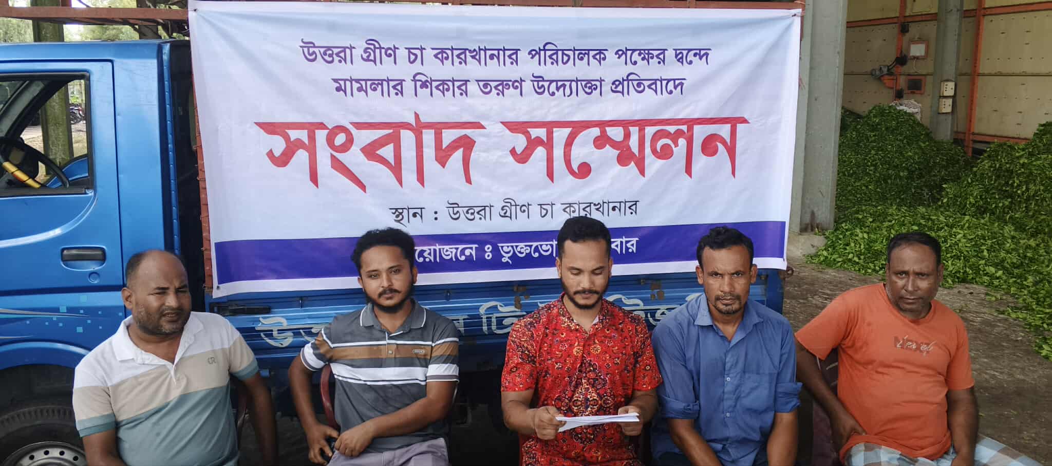 সংবাদ সম্মেলনে নতুন উদ্যোক্তা রাকিব হোসেন, কারখানার কর্মী মকলেছার রহমান, মন্তাজ আলী, শ্রমিক ও স্থানীয় চা চাষীরা উপস্থিত ছিলেন।