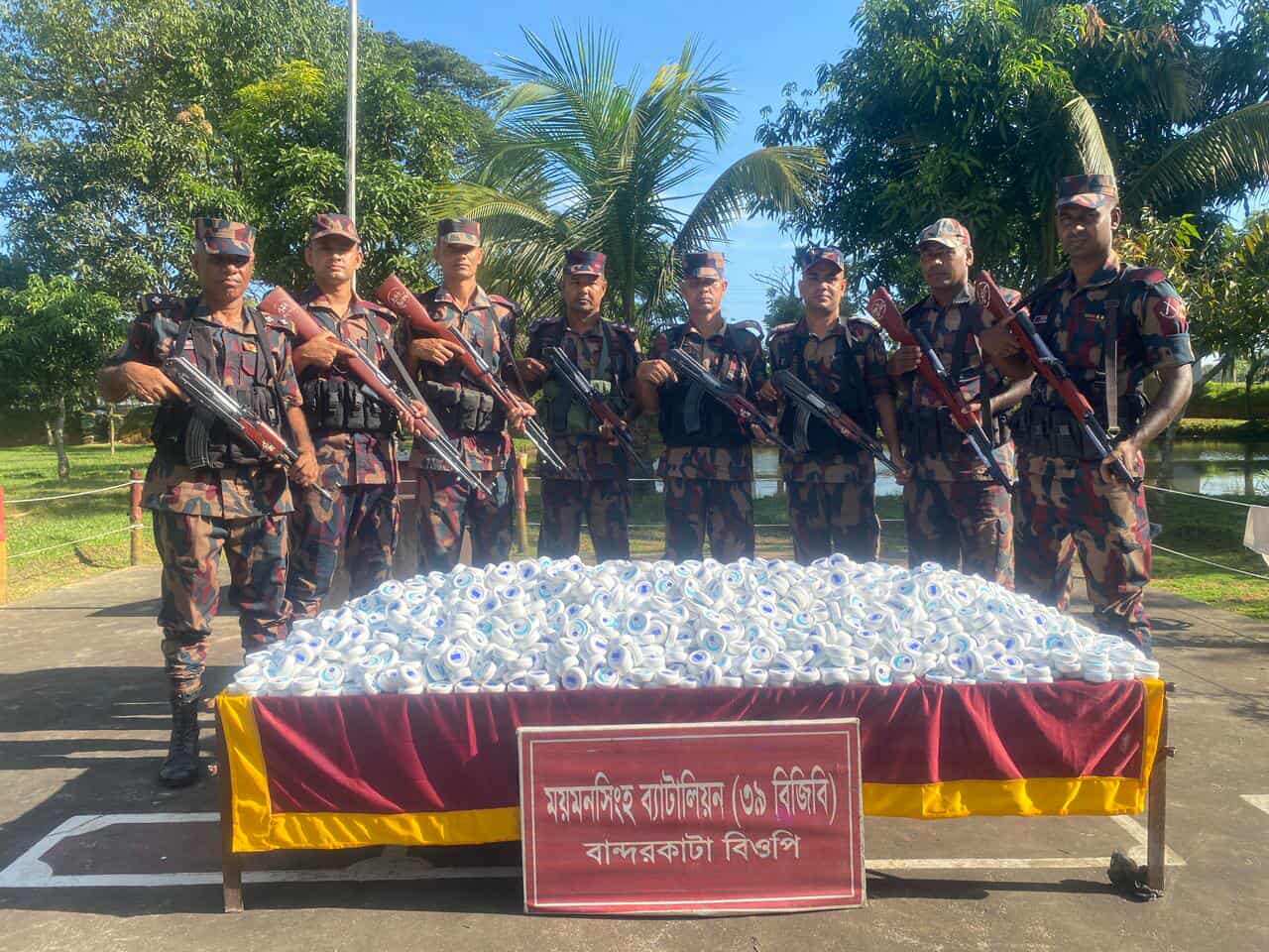 ময়মনসিংহ ব্যাটালিয়ন (৩৯ বিজিবি)-এর অধিনায়ক লেফটেন্যান্ট কর্নেল মেহেদি হাসান জানান, গোপন সংবাদের ভিত্তিতে সীমান্তবর্তী হালুয়াঘাটের নামছাপাড়া ও ডুমনিকুড়া এবং শেরপুরের ঝিনাইগাতী উপজেলার ফাকরাবাদ সীমান্ত এলাকায় পৃথক অভিযান চালানো হয়।