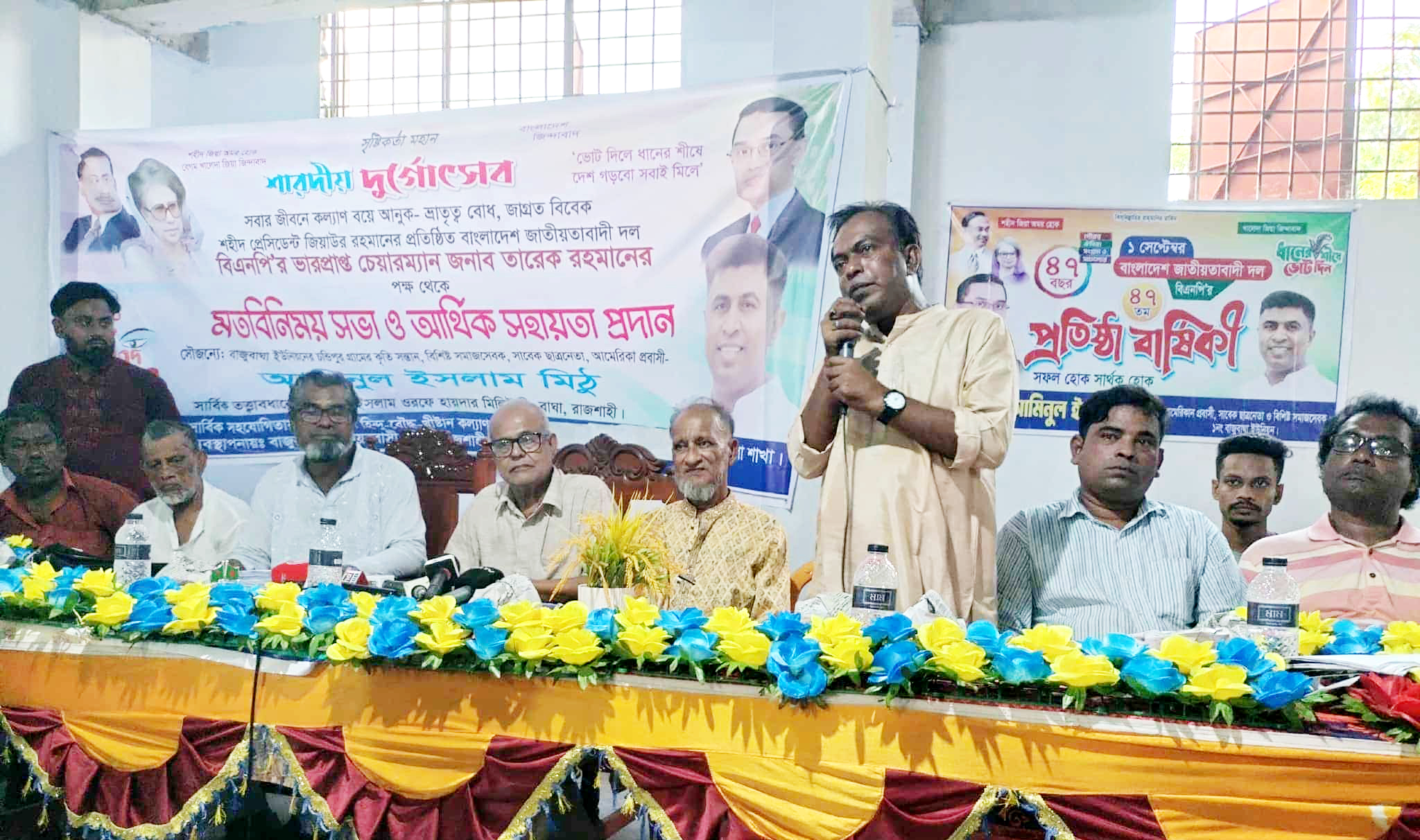 বিএনপি নেতা আমিনুল ইসলাম মিঠুর আর্থিক সহায়তার এই অনুষ্ঠানে সভাপতিত্ব করেন শ্রী তাপস কুমার এবং সঞ্চালনা করেন শ্রী নয়ন সরকার। প্রধান অতিথি হিসেবে উপস্থিত ছিলেন মোঃ হামিদুল ইসলাম (হায়দার মিলিটারী) এবং প্রধান বক্তা ছিলেন ধীরেন্দ্রনাথ সরকার। বিশেষ অতিথি হিসেবে উপস্থিত ছিলেন জাহাঙ্গীর হোসেন ও জাহিদ হাসান।