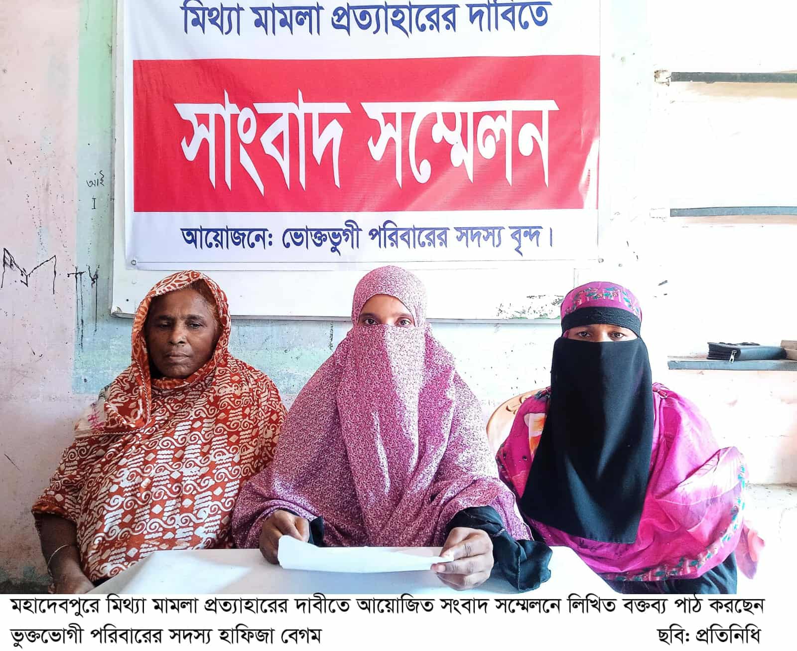 সংবাদ সম্মেলনে লিখিত বক্তব্য পাঠ করেন ভুক্তভোগী পরিবারের সদস্য সোহরাব হোসেনের স্ত্রী হাফিজা বেগম। তাঁর সঙ্গে উপস্থিত ছিলেন আফজাল হোসেনের স্ত্রী, শরিফুল ও রফিকুলের মা শহিদা বেগম এবং রফিকুলের স্ত্রী জেসমিন আরা।