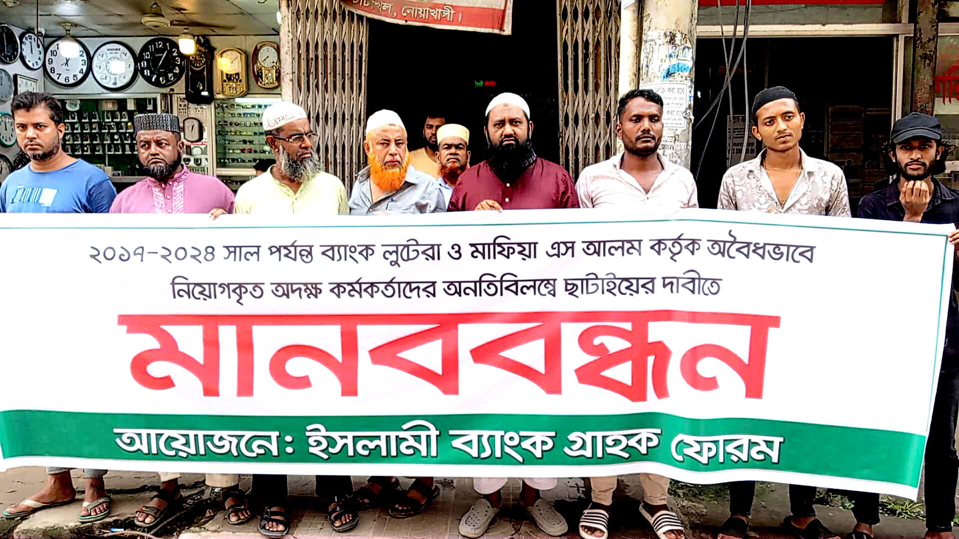 চাটখিলে ইসলামী ব্যাংকে অবৈধ নিয়োগ বাতিলের দাবিতে গ্রাহকদের মানববন্ধন