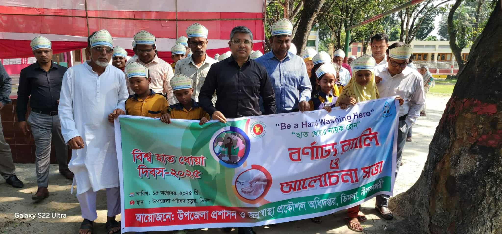 "হাত ধোয়ার নায়ক হোন" এই প্রতিপাদ্যকে সামনে রেখে নীলফামারীর ডিমলায় উৎসবমুখর পরিবেশে পালিত হয়েছে বিশ্ব হাত ধোয়া দিবস-২০২৫। পরিচ্ছন্নতার বার্তা ছড়িয়ে দিতে উপজেলা প্রশাসন ও জনস্বাস্থ্য প্রকৌশল অধিদপ্তরের উদ্যোগে বুধবার (১৫ অক্টোবর) সকালে দিবসটি উদ্যাপন করা হয়।