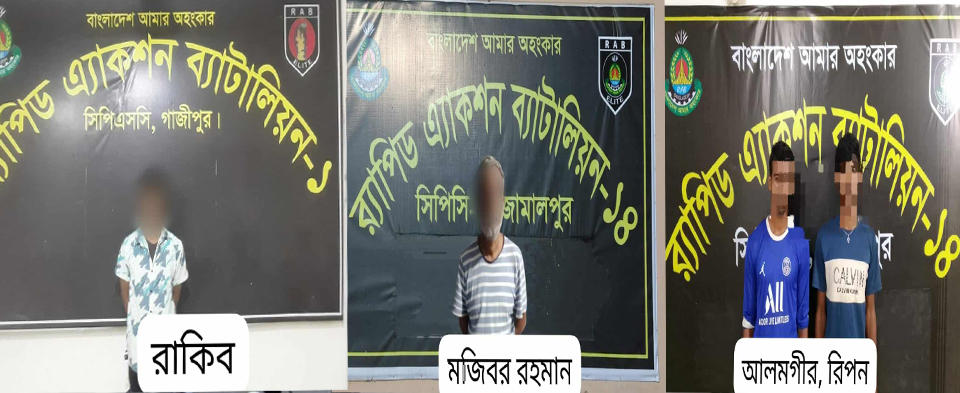 র‌্যাবের পৃথক অভিযানে হত্যা ও মাদক মামলার চার আসামি গ্রেফতার
