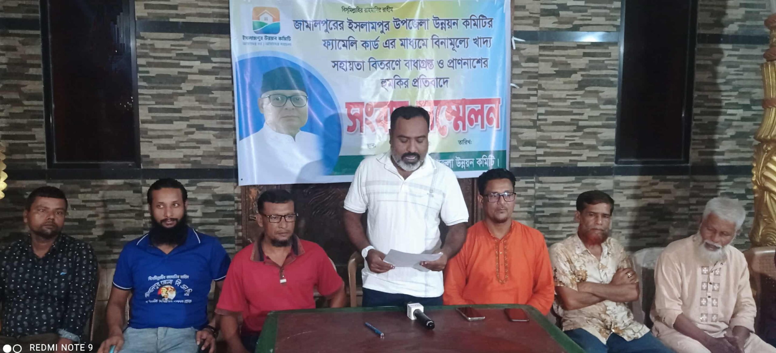 বিএনপির ভারপ্রাপ্ত চেয়ারম্যান তারেক রহমানের প্রতিশ্রুতির অংশ হিসেবে “ফ্যামিলি কার্ড প্রকল্প” বাস্তবায়নে মাঠে নেমেছে ইসলামপুর উপজেলা উন্নয়ন কমিটি। দরিদ্র ও প্রান্তিক জনগোষ্ঠীর পাশে দাঁড়ানোর এই মানবিক উদ্যোগে বাঁধা সৃষ্টি, লুটপাট ও হত্যার হুমকির ঘটনায় রবিবার (১৯ অক্টোবর) রাতে উপজেলার পাথর্শী ইউনিয়নের মুখশিমলা এলাকায় সংবাদ সম্মেলন করেন স্থানীয় বিএনপি নেতা ও ইসলামপুর উপজেলা উন্নয়ন কমিটির সাধারণ সম্পাদক মোঃ শাহজালাল সরকার।