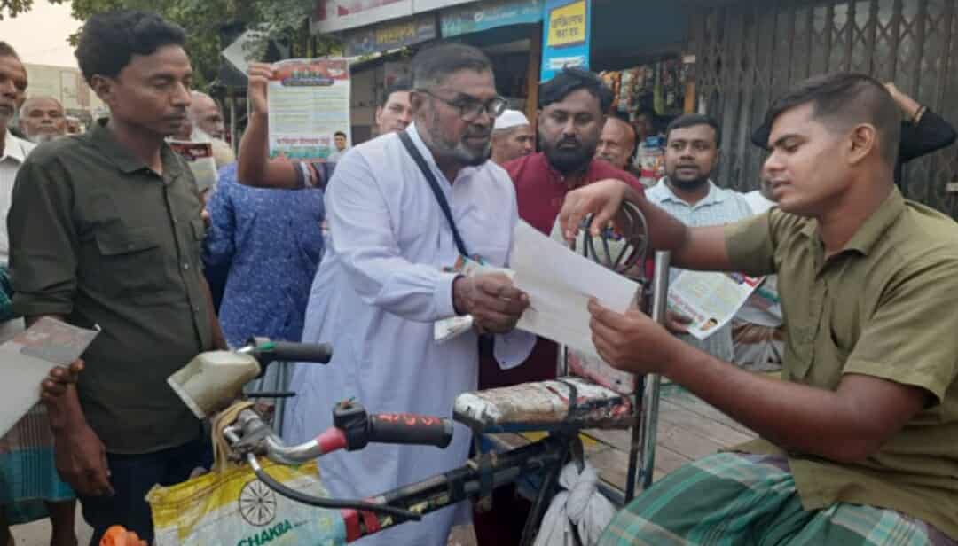শুক্রবার বিকালে উপজেলার চণ্ডিপুর বাজারে রাজশাহী-৬ (চারঘাট-বাঘা) আসনে ধানের শীষের মনোনয়নপ্রত্যাশী আমেরিকান প্রবাসী আমিনুল ইসলাম মিঠুর পক্ষে এ লিফলেট বিতরণ করা হয়।