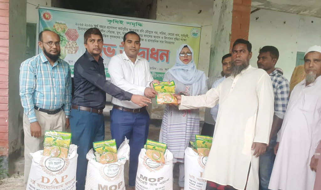 ২০২৫-২৬ অর্থবছরের প্রণোদনা কর্মসূচির আওতায় রবি মৌসুমে গম, সরিষা, বোরো ধান, সূর্যমুখী, চিনাবাদাম, শীতকালীন পেঁয়াজ, মুগ, মসুর ও অড়হড় ফসলের আবাদ ও উৎপাদন বৃদ্ধির লক্ষ্যে ক্ষুদ্র ও প্রান্তিক কৃষকদের মাঝে বিনামূল্যে রাসায়নিক সার ও বীজ বিতরণ করা হচ্ছে।