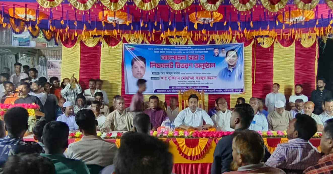 গণসংযোগের ধারাবাহিকতায় শনিবার (২৫ অক্টোবর) নালিতাবাড়ী উপজেলার মরিচপুরান ইউনিয়নে আলোচনা সভা ও বিভিন্ন হাট-বাজারে লিফলেট বিতরণ করেন আবু সুফিয়ান।