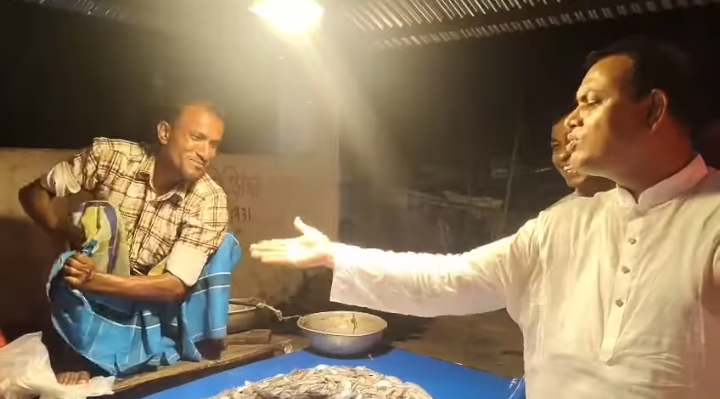 ভিডিওতে দেখা যায়, মাছ ব্যবসায়ী হাত মিলানোর সময় নিজের পরা লুঙ্গিতে হাত মুছে নেন। তখন মামুন বিন আব্দুল মান্নান হাসতে হাসতে বলেন,