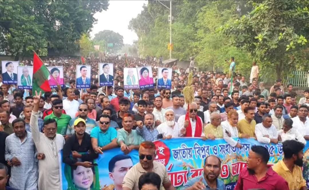 রাজশাহীর বাঘায় জাতীয় বিপ্লব ও সংহতি দিবস উপলক্ষে শনিবার (৮ নভেম্বর) বিকেল ৪টায় বাঘা উচ্চ বিদ্যালয় মাঠে উপজেলা বিএনপি ও সহযোগী সংগঠনের উদ্যোগে বর্ণাঢ্য র্যালি ও আলোচনা সভা অনুষ্ঠিত হয়েছে। অনুষ্ঠানে কয়েক হাজার নেতাকর্মীসহ বিভিন্ন শ্রেণি-পেশার মানুষ স্বতঃস্ফূর্ত অংশগ্রহণ করেন।