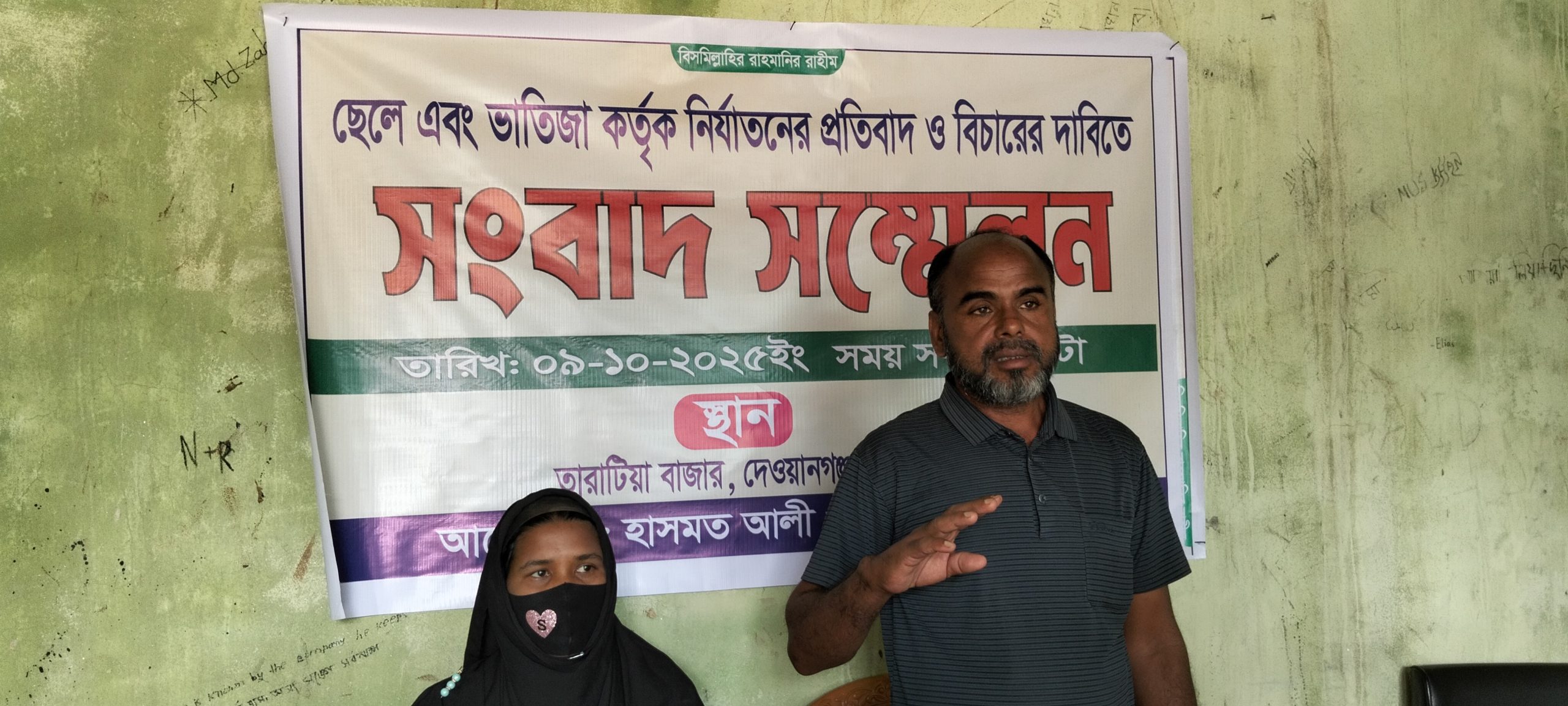 জামালপুরের দেওয়ানগঞ্জে জীবনের নিরাপত্তা চেয়ে ছেলে ও ভাতিজার বিরুদ্ধে সংবাদ সম্মেলন করেছেন এক অসহায় বাবা।