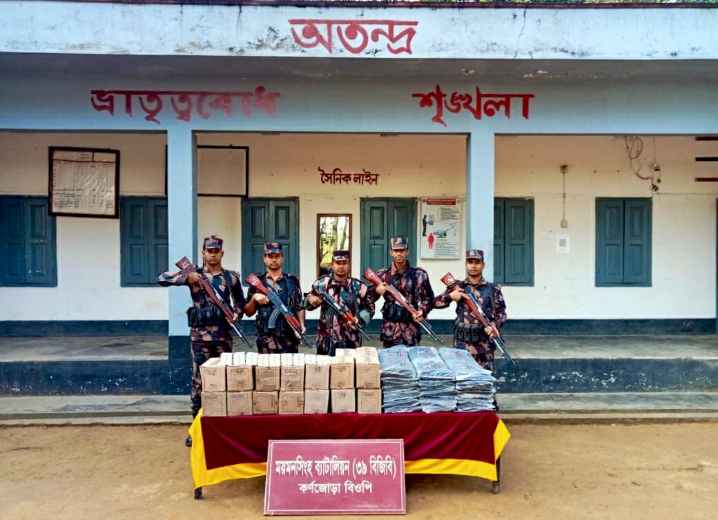 শেরপুর ও ময়মনসিংহ সীমান্তজুড়ে ময়মনসিংহ ব্যাটালিয়ন (৩৯ বিজিবি) এর টানা অভিযানে বিপুল পরিমাণ ভারতীয় চোরাচালানী মালামাল ও গবাদিপশু আটক করা হয়েছে। গোপন সংবাদের ভিত্তিতে ২০ ও ২১ নভেম্বর দুই দিনে পৃথক অভিযানে এসব পণ্য উদ্ধার করে বিজিবি।