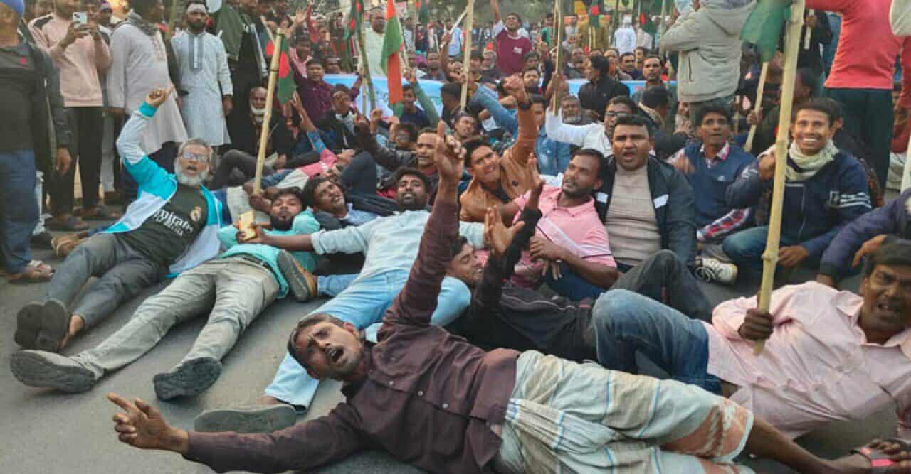 রাজশাহী (আবুল হাশেম, ব্যুরো) – রাজশাহী-১ (গোদাগাড়ী-তানোর) আসনে বিএনপির প্রাথমিক মনোনয়ন পাওয়া প্রার্থী পরিবর্তনের দাবিতে তৃণমূল নেতাকর্মীরা শনিবার বিকেলে বিক্ষোভ করেছেন। গোদাগাড়ীর সিঅ্যান্ডবি মোড়ে তারা শুয়ে পড়ে সন্ধ্যা পর্যন্ত মহাসড়ক অবরোধ করেন। এতে দুইপাশে দীর্ঘ যানজট সৃষ্টি হয়।