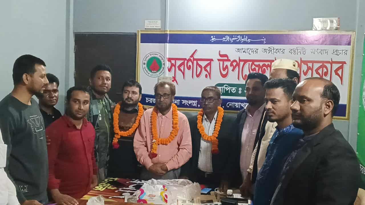 নোয়াখালীর সুবর্ণচর উপজেলা প্রেসক্লাবের নতুন আহবায়ক কমিটি গঠন করা হয়েছে। সভায় পুরাতন কমিটি বিলুপ্ত ঘোষণা করা হয় এবং নতুন কমিটি আগামী ছয় মাসের মধ্যে পূর্ণাঙ্গ কমিটি গঠনের জন্য সাধারণ সভা আহবান করবে।