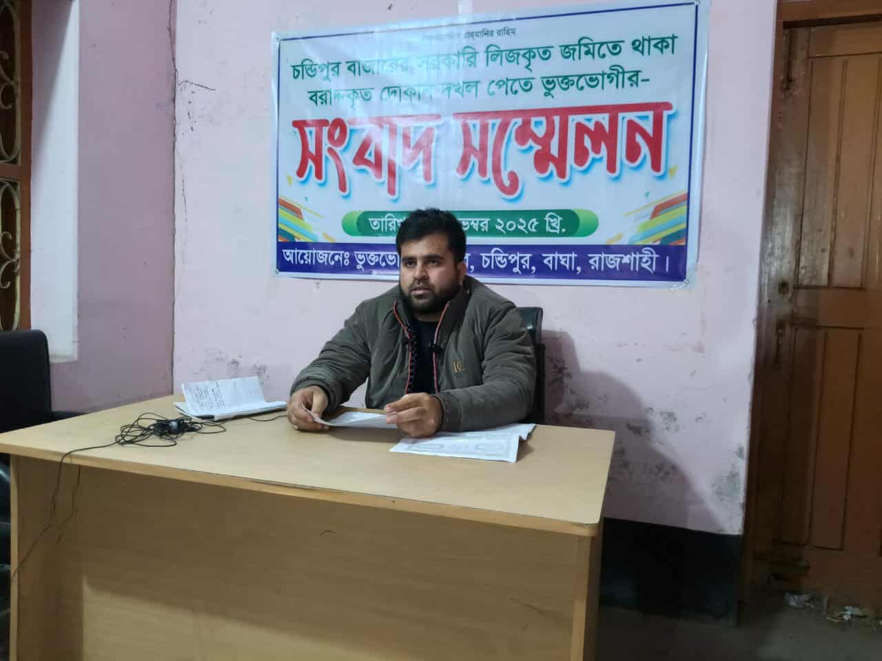 রাজশাহীর বাঘায় জোরপূর্বক দোকানঘর দখলের অভিযোগে সংবাদ সম্মেলন করেছেন ভুক্তভোগীর পরিবার। বুধবার (২৬ নভেম্বর) দুপুর ১২টায় চন্ডিপুর বাজারে নিজের ব্যবসা প্রতিষ্ঠানে সংবাদ সম্মেলন করেন দোকানঘরের মালিক সোহেল রানা।