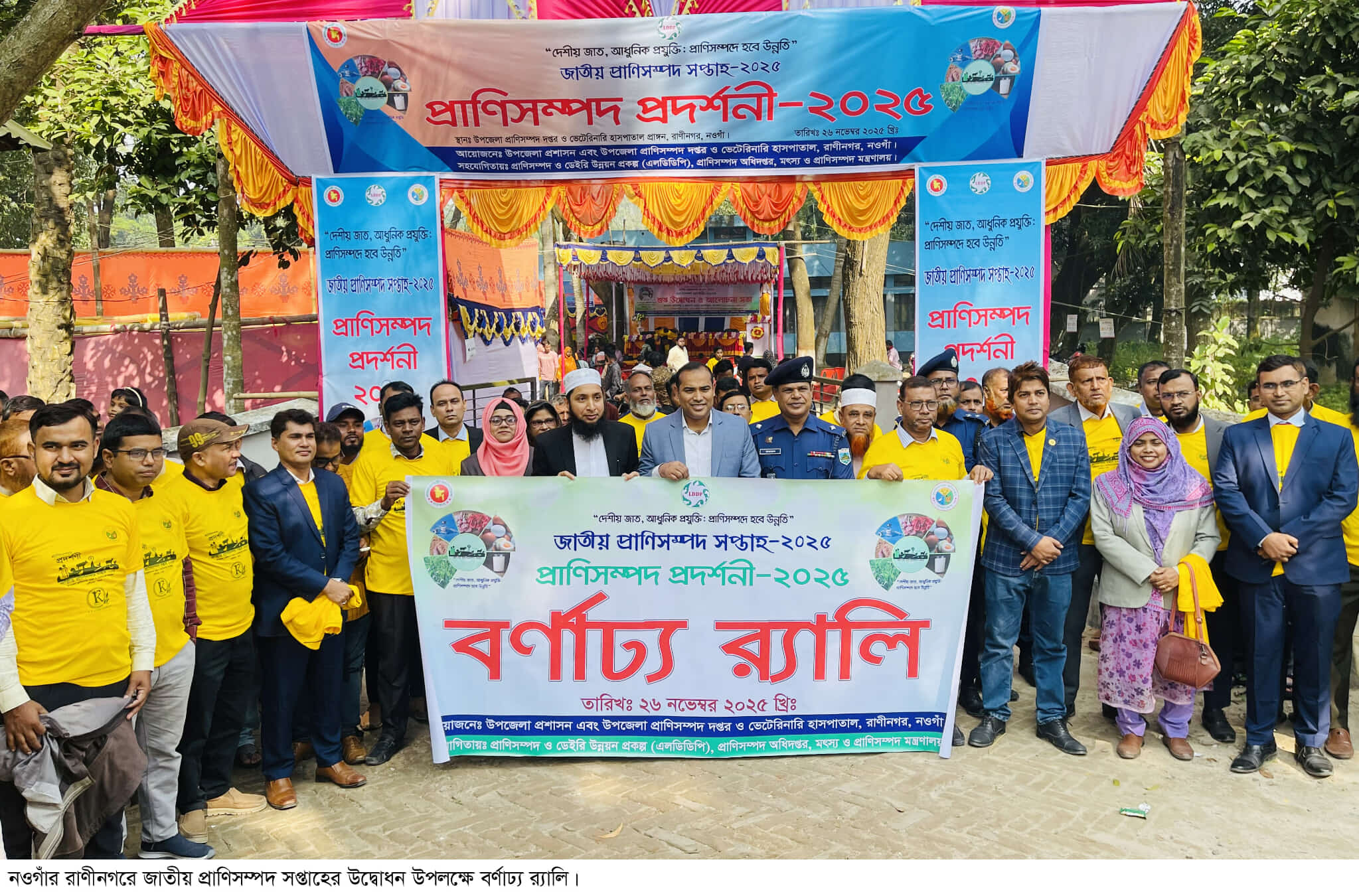 “দেশীয় জাত, আধুনিক প্রযুক্তি: প্রাণিসম্পদে হবে উন্নতি”—এ প্রতিপাদ্যকে সামনে রেখে নওগাঁর রাণীনগরে জাতীয় প্রাণিসম্পদ সপ্তাহের উদ্বোধন হয়েছে। বুধবার উপজেলা প্রশাসন ও উপজেলা প্রাণিসম্পদ দপ্তরের উদ্যোগে র্যালি, আলোচনা সভা ও স্টল পরিদর্শনসহ নানা কর্মসূচি পালন করা হয়।