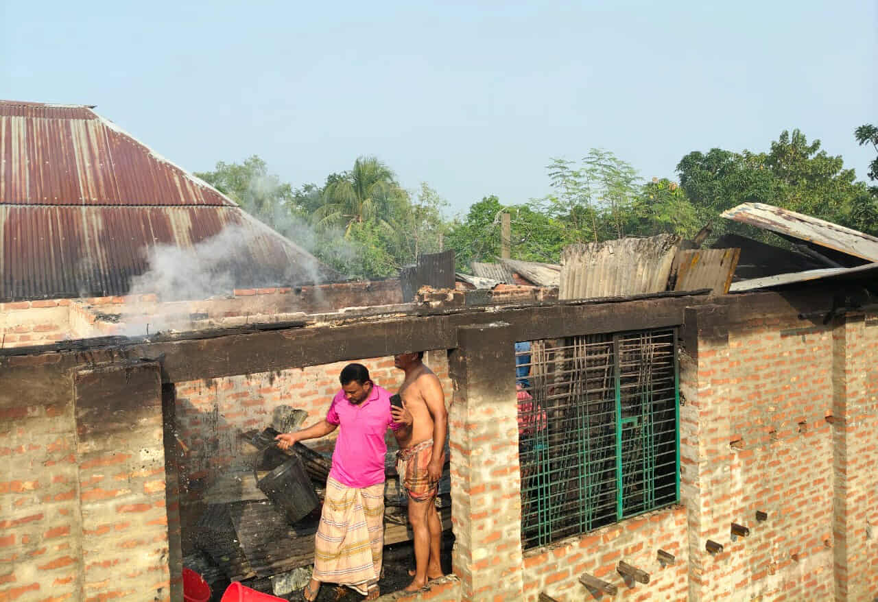 রজব আলীর ভাতিজা আব্দুর রাজ্জাক জানান, দুপুর দেড়টার দিকে হঠাৎ রজব আলীর বাড়িতে আগুন দেখতে পান স্থানীয়রা। পরে গ্রামবাসী দৌড়ে এসে আগুন নেভানোর চেষ্টা চালান। আগুন দ্রুত ছড়িয়ে পড়ে পাশের আজাদ ও জহিরের বাড়ির কিছু অংশেও। প্রায় দুই ঘণ্টার চেষ্টায় আগুন নিয়ন্ত্রণে আসে।