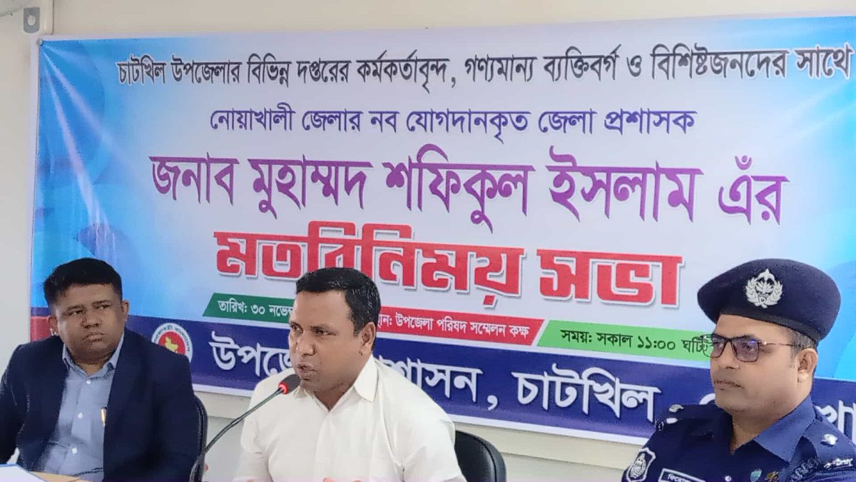 জেলা প্রশাসক মোহাম্মদ শফিকুল ইসলাম তার বক্তব্যে চাটখিলে বিরাজমান বিভিন্ন সমস্যার দ্রুত সমাধানের আশ্বাস দেন এবং সকলের সহযোগিতা কামনা করেন।