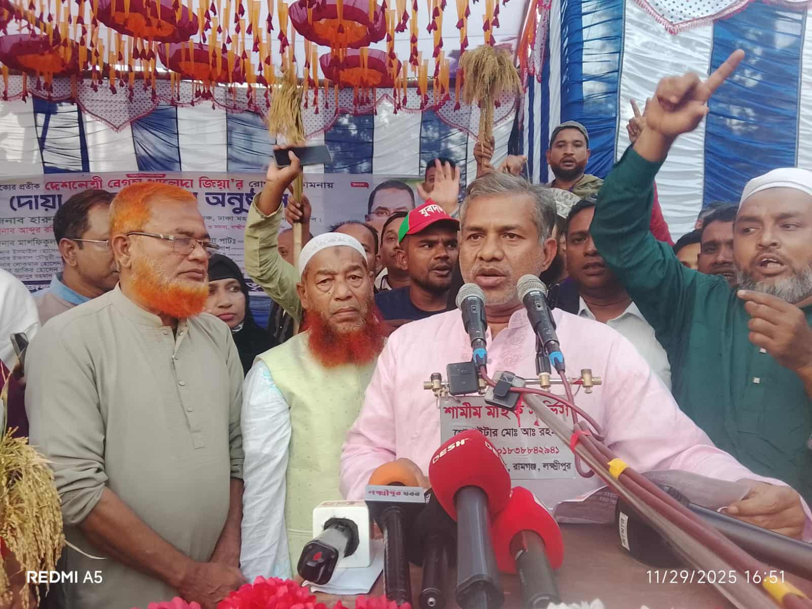 ঢাকা দক্ষিণ বিএনপির সিনিয়র যুগ্ম আহবায়ক, সাবেক কমিশনার ও লক্ষ্মীপুর-১ (রামগঞ্জ) আসনের ধানের শীষের মনোনয়নপ্রত্যাশী হারুনুর রশিদ বলেছেন, “রামগঞ্জ বিএনপির ঘাঁটি। এখানে আগে চারবার ধানের শীষের প্রার্থী নির্বাচিত হয়েছেন। এ আসনে বিএনপির দলীয় প্রার্থী ছাড়া অন্য কোনো দল বা জোট থেকে প্রার্থী দেয়া হলে বিএনপি এ আসন হারাতে পারে। এ এলাকার জনগণ কোনো পরগাছাকে নির্বাচিত করবে না—আজকের জনসভাই তার প্রমাণ।”