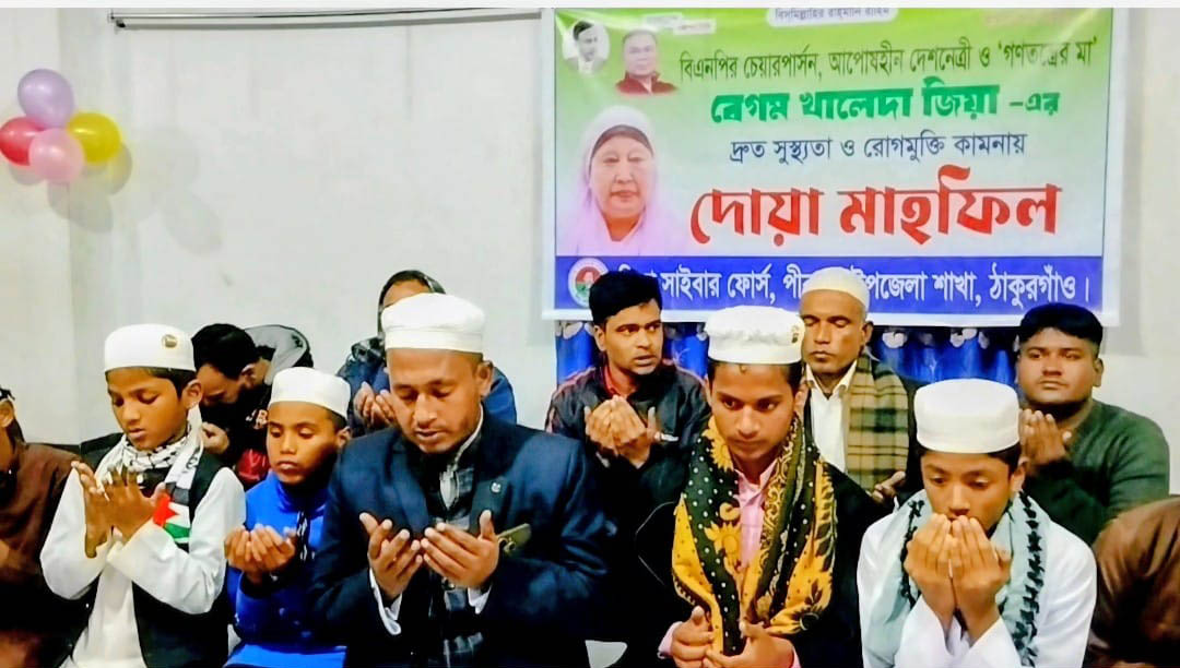 চেয়ারপার্সন ও সাবেক প্রধানমন্ত্রী বেগম খালেদা জিয়ার সুস্থতা কামনায় জিয়া সাইবার ফোর্স, পীরগঞ্জ উপজেলা শাখার উদ্যোগে দোয়া ও মিলাদ মাহফিল অনুষ্ঠিত হয়েছে।