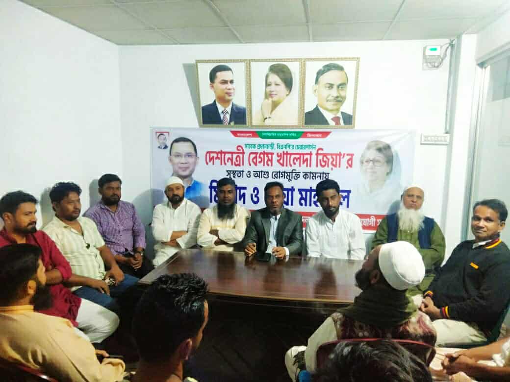 দোয়া পরিচালনা করেন খৈরতল দক্ষিণ পাড়া আবু হাসেম জামে মসজিদের ইমাম আসাদুল্লাহ। মিলাদ ও বিশেষ মোনাজাতে বেগম খালেদা জিয়ার সুস্থতা কামনার পর উপস্থিত সবার মাঝে তবারক বিতরণ করা হয়।