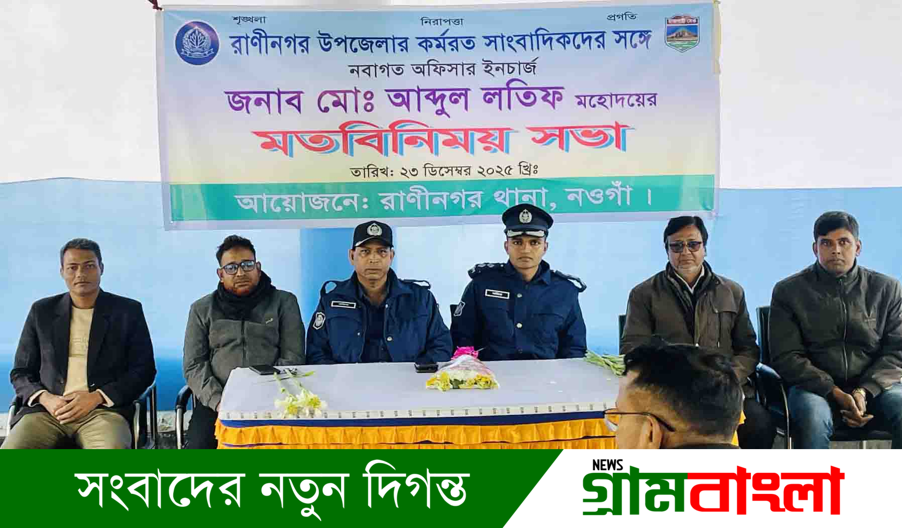 মঙ্গলবার (তারিখ উল্লেখ না থাকলে) বেলা সাড়ে ১১টার দিকে রাণীনগর থানায় এ মতবিনিময় সভা অনুষ্ঠিত হয়। উল্লেখ্য, তিনি গত ৭ ডিসেম্বর রাণীনগর থানায় যোগদান করেন।