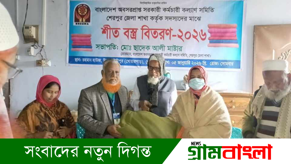 শেরপুরে অবসরপ্রাপ্ত সরকারি কর্মচারী কল্যাণ সমিতির উদ্যোগে নারী ও পুরুষ সদস্যদের মাঝে শীতবস্ত্র বিতরণ কর্মসূচি অনুষ্ঠিত হয়েছে।
