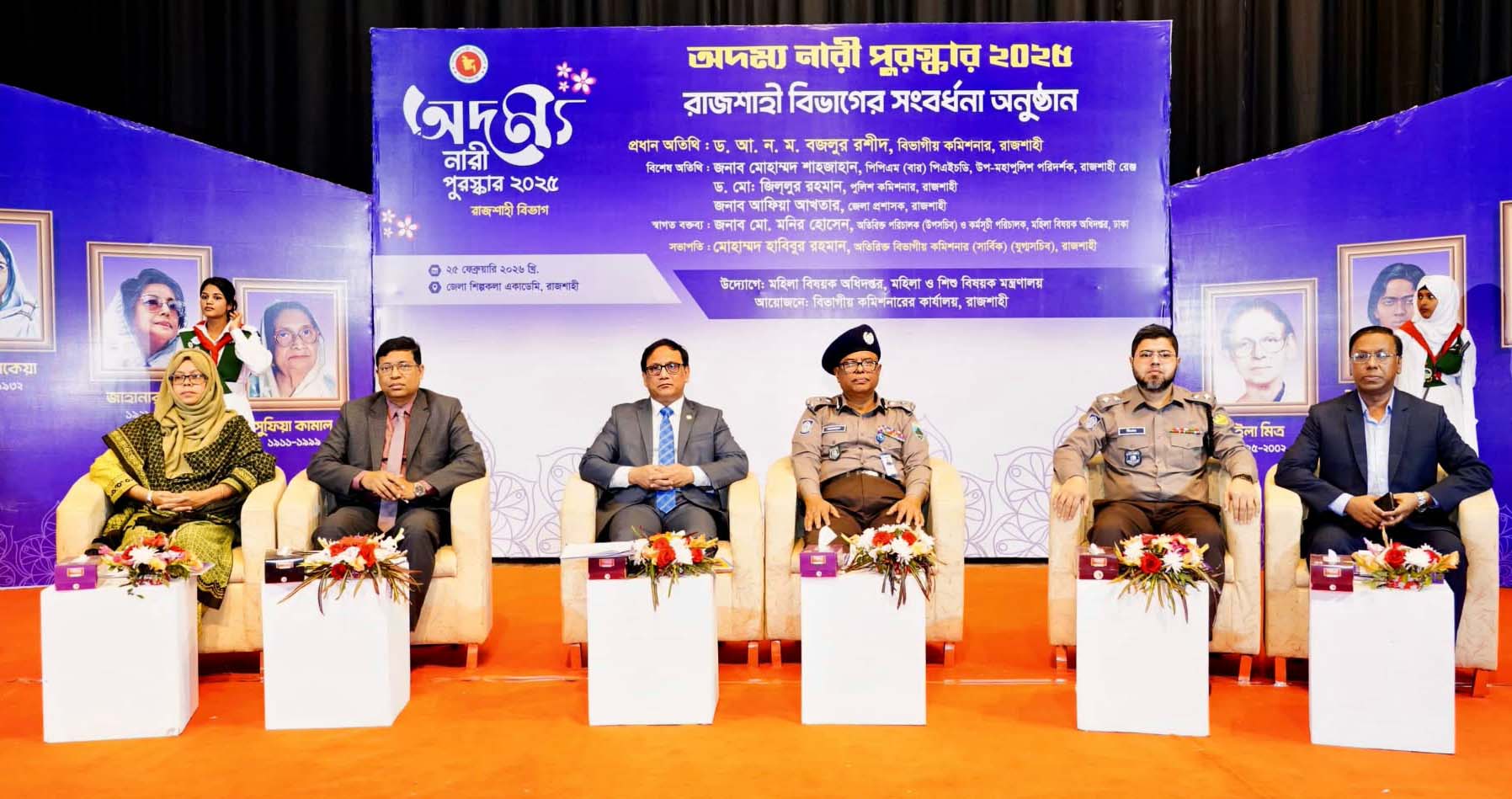 বুধবার (২৫ ফেব্রুয়ারি) সকালে রাজশাহী জেলা শিল্পকলা একাডেমি মিলনায়তনে এক জাঁকজমকপূর্ণ অনুষ্ঠানের মাধ্যমে পাঁচ ক্যাটাগরিতে মোট ৪০ জন নারীকে সম্মাননা প্রদান করা হয়। তাদের মধ্য থেকে শ্রেষ্ঠ পাঁচজনকে বিভাগীয় পর্যায়ের ‘অদম্য নারী’ হিসেবে ঘোষণা করা হয়।