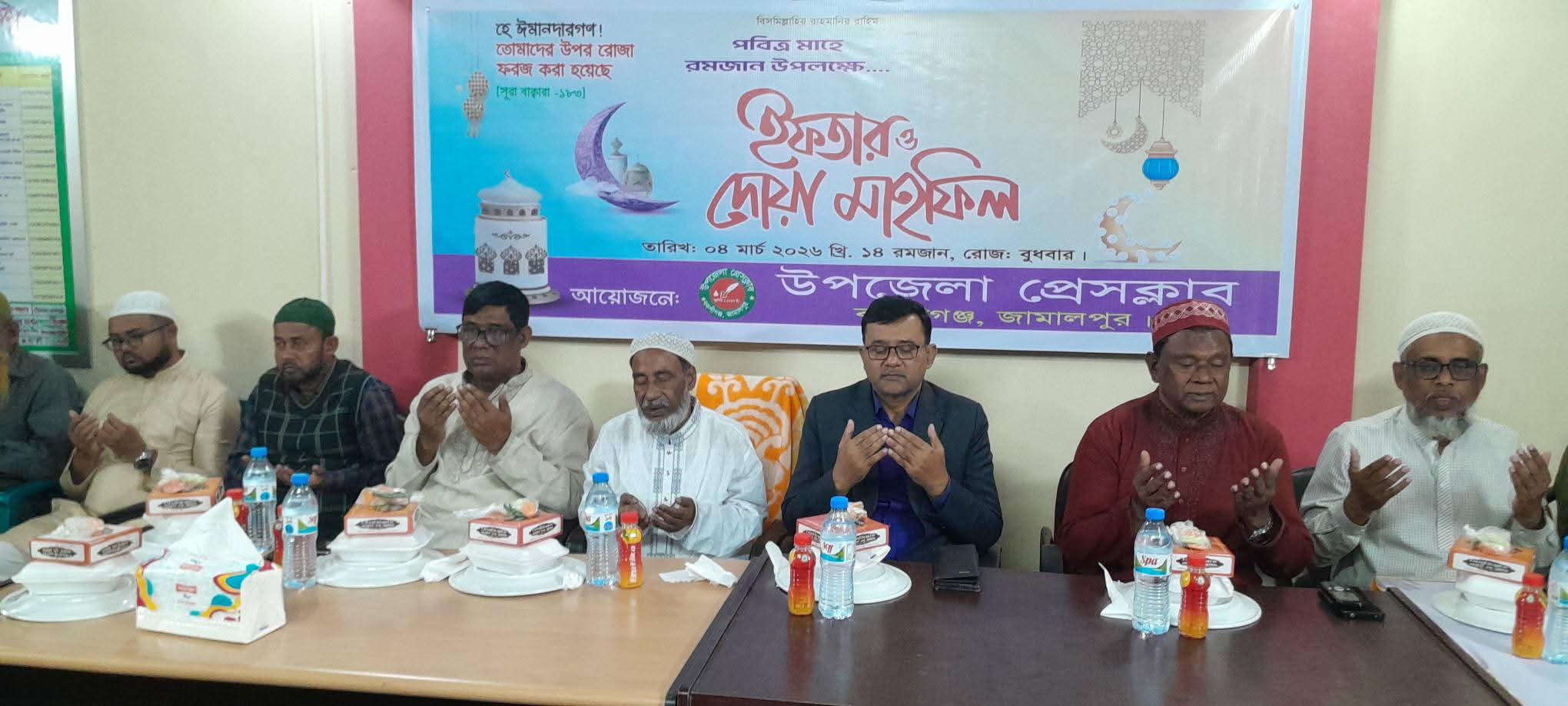 বকশীগঞ্জ (জামালপুর) প্রতিনিধি: জামালপুরের বকশীগঞ্জে ঐতিহ্যবাহী উপজেলা প্রেসক্লাবের উদ্যোগে পবিত্র মাহে রমজান উপলক্ষে ইফতার ও দোয়া মাহফিল অনুষ্ঠিত হয়েছে।