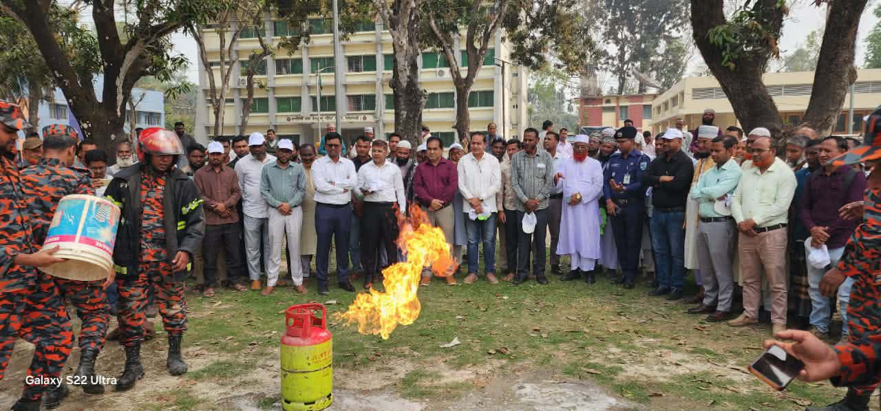 অগ্নিনির্বাপণ মহড়া: আলোচনা সভা শেষে উপজেলা পরিষদ প্রাঙ্গণে অগ্নিকাণ্ড বিষয়ক একটি বাস্তব মহড়া প্রদর্শন করা হয়। মহড়ায় আগুন নেভানোর প্রাথমিক কৌশল, আটকে পড়া ব্যক্তিদের উদ্ধার এবং জরুরি পরিস্থিতিতে দ্রুত সাড়া দেওয়ার পদ্ধতিগুলো হাতে-কলমে দেখানো হয়। উপস্থিত দর্শনার্থীরা অত্যন্ত আগ্রহের সঙ্গে এই মহড়া পর্যবেক্ষণ করেন।