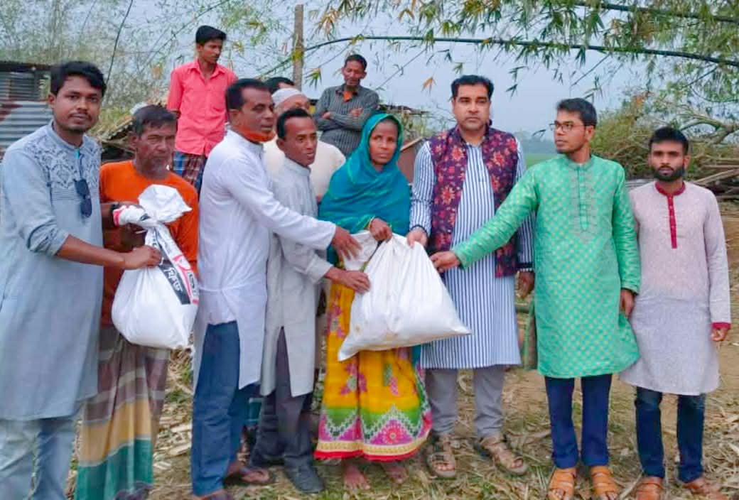 ঘূর্ণিঝড়ে লণ্ডভণ্ড হওয়া পরিবারগুলোর মাঝে চাল, ডাল, আলু, পেঁয়াজ, তেল, সেমাই ও চিনিসহ নিত্যপ্রয়োজনীয় খাদ্যদ্রব্য তুলে দেন নালিতাবাড়ী উপজেলা যুবদলের সিনিয়র যুগ্ম আহ্বায়ক ও সাবেক ছাত্রদল সভাপতি আব্দুর রহমান তারা। উল্লেখ্য, তিনি আগামী নির্বাচনে ৮নং রূপনারায়নকুড়া ইউনিয়নের চেয়ারম্যান পদপ্রার্থী।