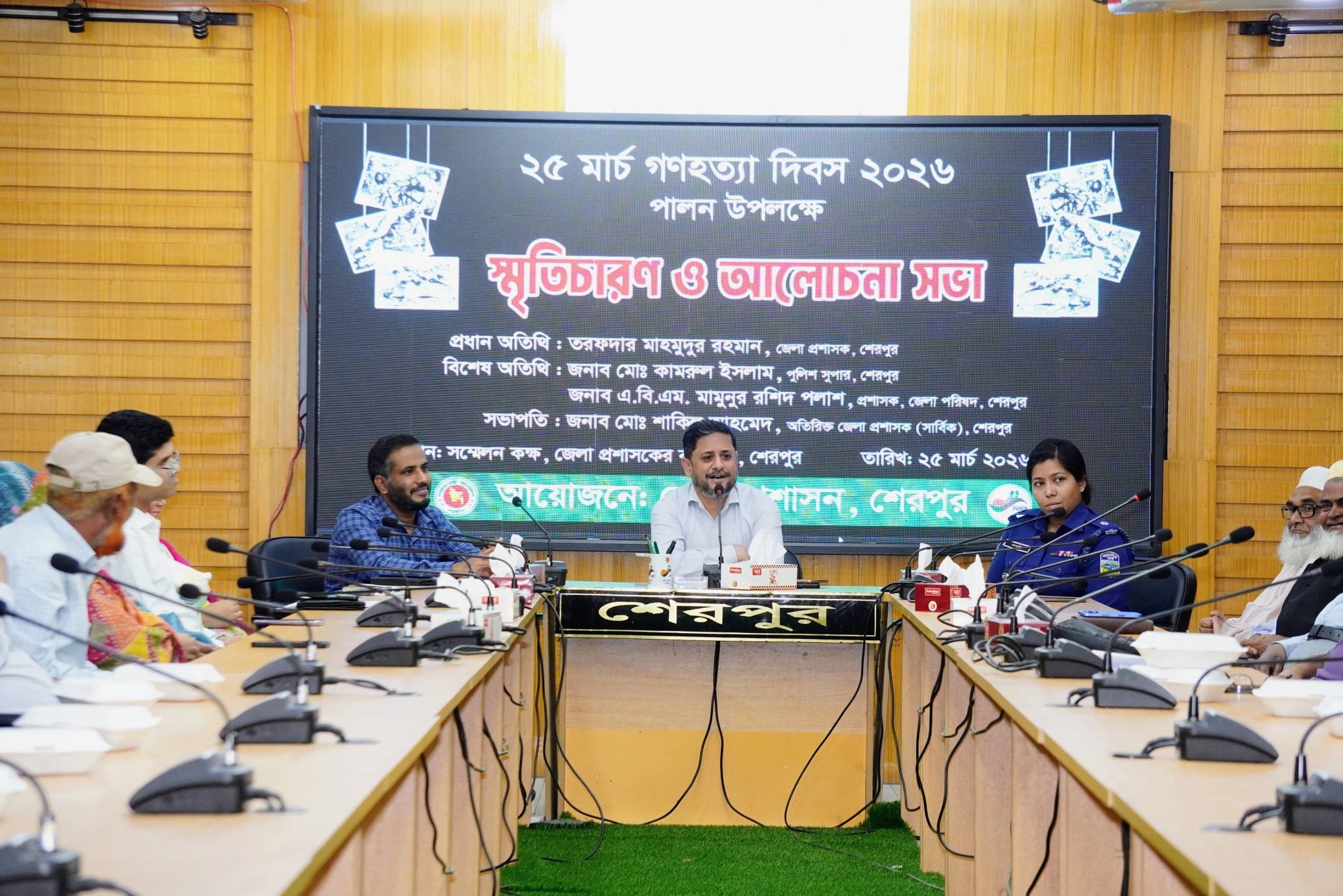 বুধবার (২৫ মার্চ) জেলা প্রশাসকের সম্মেলন কক্ষে আয়োজিত এই সভায় প্রধান অতিথি হিসেবে উপস্থিত ছিলেন শেরপুরের জেলা প্রশাসক তরফদার মাহমুদুর রহমান। সভায় ১৯৭১ সালের ২৫শে মার্চের সেই বিভীষিকাময় গণহত্যার স্মৃতিচারণ করা হয় এবং শহীদদের আত্মার মাগফেরাত কামনা করে গভীর শ্রদ্ধা জানানো হয়।