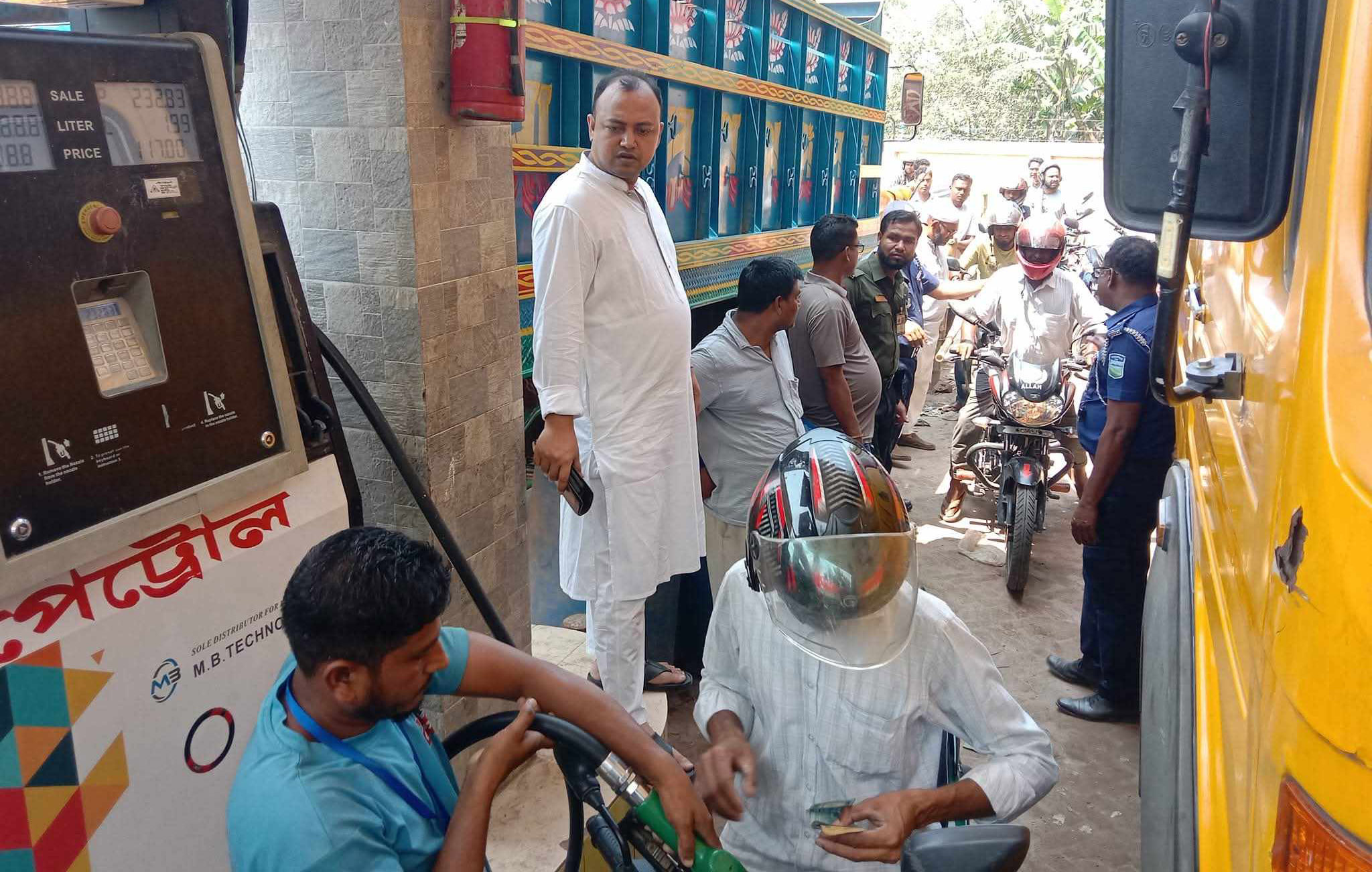 দুপুরে পরেশ চন্দ্র সাহা ফিলিং স্টেশনে সরেজমিনে পরিদর্শনে যান উপজেলা নির্বাহী অফিসার মুরাদ হোসেন। তিনি নিজে দাঁড়িয়ে থেকে তেল সরবরাহ কার্যক্রম মনিটরিং করেন। এসময় তিনি পাম্প কর্তৃপক্ষকে নির্দেশ দেন: