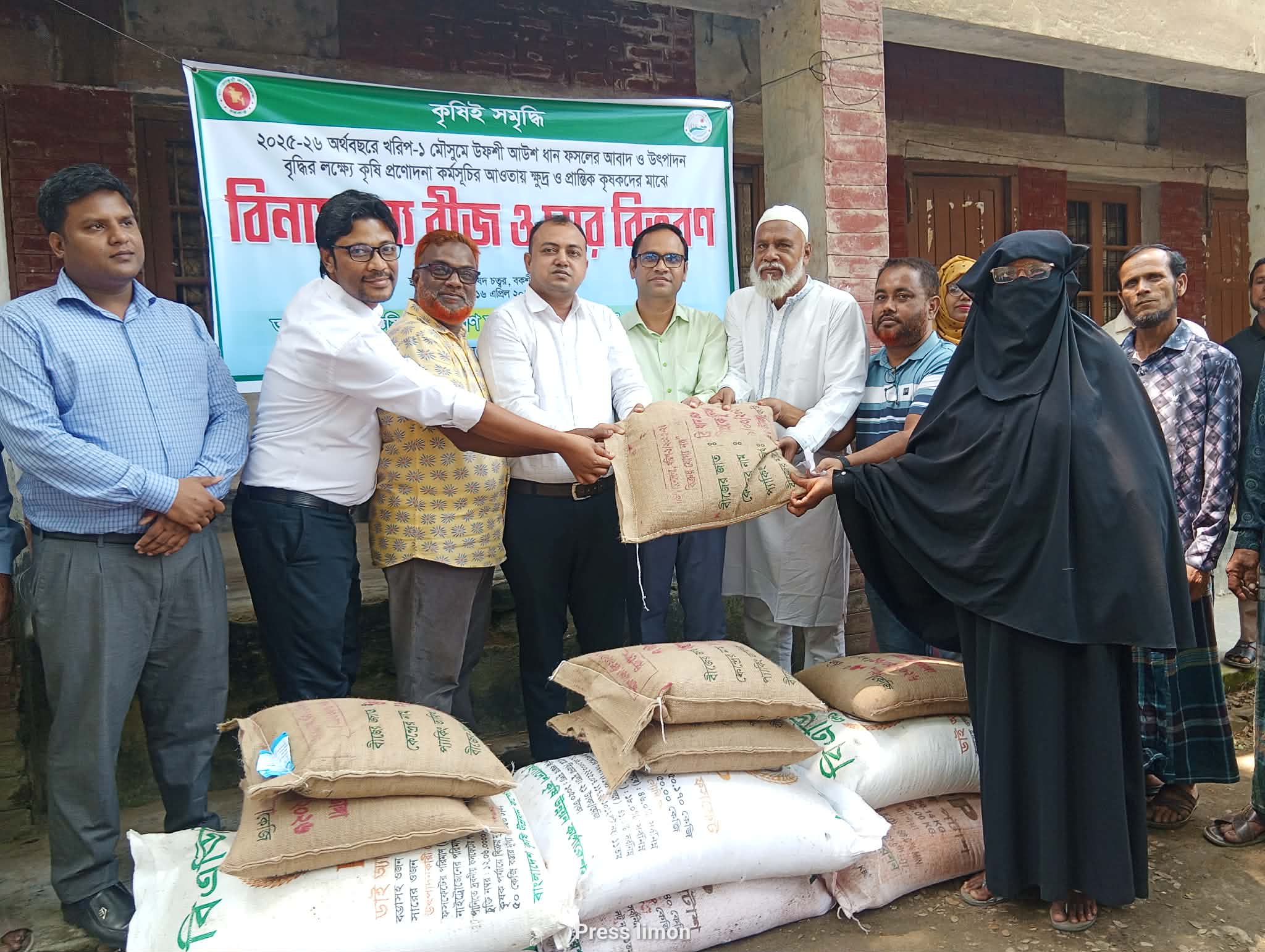 জামালপুরের বকশীগঞ্জে ২০২৫-২৬ অর্থবছরের খরিপ-১ মৌসুমে উফশী ধান ফসলের আবাদ ও উৎপাদন বৃদ্ধির লক্ষ্যে ক্ষুদ্র ও প্রান্তিক কৃষকদের মাঝে বিনামূল্যে কৃষি উপকরণ বিতরণ করা হয়েছে।