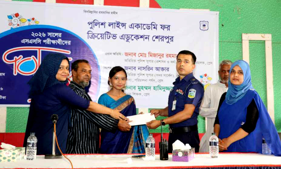 শেরপুর পুলিশ লাইন্স একাডেমি ফর ক্রিয়েটিভ এডুকেশন (প্লেস)-এর ২০২৬ সালের এসএসসি পরীক্ষার্থীদের বিদায় সংবর্ধনা ও দোয়া মাহফিল অনুষ্ঠিত হয়েছে।