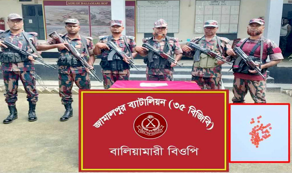 বিজিবি সূত্র জানায়, নিজস্ব গোয়েন্দা তথ্যের ভিত্তিতে জামালপুর ৩৫ বিজিবির আওতাধীন বালিয়ামারী বিওপির একটি টহল দল সীমান্তে মাদকবিরোধী বিশেষ অভিযান পরিচালনা করে। অভিযান চলাকালীন ১০৭২ সীমান্ত পিলারের নিকটবর্তী লাঠিয়ালডাঙ্গা এলাকায় তল্লাশি চালিয়ে মালিকবিহীন অবস্থায় ৫০ পিস ইয়াবা ট্যাবলেট উদ্ধার করা হয়। পরে উদ্ধারকৃত মাদকদ্রব্যগুলো জব্দ করে বিজিবি।