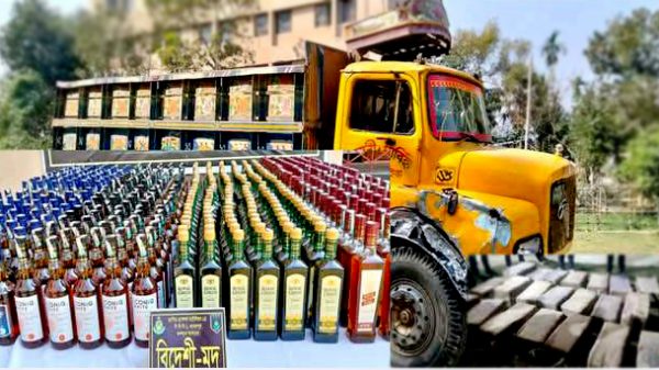 মাহফুজুর রহমান সাইমন শেরপুর : শেরপুর সদর উপজেলার নন্দীর বাজার এলাকায় একটি ট্রাকে তল্লাশি চালিয়ে আমদানি নিষিদ্ধ ১৩০১ বোতল বিদেশি মদসহ তিন মাদক কারবারিকে আটক করেছে র্যাব-১৪। উদ্ধারকৃত মদের আনুমানিক