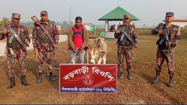 মনজু হোসেন, স্টাফ রিপোর্টার | ২৫ জানুয়ারি, ২০২৬ পঞ্চগড় সীমান্ত এলাকায় পৃথক দুটি অভিযান চালিয়ে দুটি ভারতীয় গরুসহ মো. আসাদুল ইসলাম (৩৫) নামে এক চোরাকারবারিকে আটক করেছে বর্ডার গার্ড বাংলাদেশ