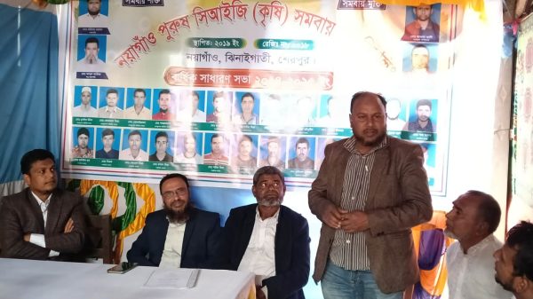 মুহাম্মদ আবু হেলাল, শেরপুর প্রতিনিধি :শেরপুরের ঝিনাইগাতী উপজেলায় নয়াগাঁও পুরুষ সিআইজি (কৃষি) সমবায় সমিতি লিমিটেডের বার্ষিক সাধারণ সভা (এজিএম) অনুষ্ঠিত হয়েছে। মঙ্গলবার (২০ জানুয়ারি) দুপুরে উপজেলার থানা রোডে অবস্থিত সমিতির