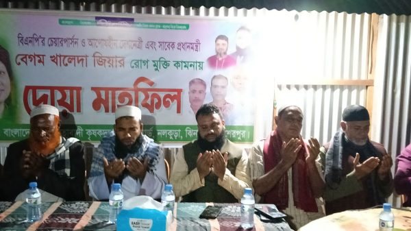 মুহাম্মদ আবু হেলাল, শেরপুর প্রতিনিধি বাংলাদেশ জাতীয়তাবাদী দল (বিএনপি)-এর চেয়ারপার্সন ও সাবেক প্রধানমন্ত্রী বেগম খালেদা জিয়ার দ্রুত রোগমুক্তি ও সুস্থতা কামনায় শেরপুরের ঝিনাইগাতী উপজেলার নলকুড়ায় দোয়া মাহফিল অনুষ্ঠিত হয়েছে। শুক্রবার