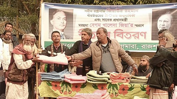 আবুল হাশেম | রাজশাহী ব্যুরো:শহীদ রাষ্ট্রপতি জিয়াউর রহমান বীরউত্তমের ৯০তম জন্মবার্ষিকী ও সাবেক প্রধানমন্ত্রী মরহুমা বেগম খালেদা জিয়ার স্মরণে অসহায় শীতার্ত মানুষের পাশে দাঁড়িয়েছে দেওয়ান ফাউন্ডেশন। মানবিক এই উদ্যোগের অংশ