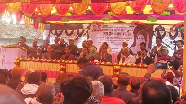 আবুল হাশেমরাজশাহী ব্যুরো : রাজশাহীর বাঘা উপজেলায় বিএনপির চেয়ারপার্সন ও সাবেক তিনবারের প্রধানমন্ত্রী দেশনেত্রী বেগম খালেদা জিয়ার স্মরণে শোক সভা ও দোয়া মাহফিল অনুষ্ঠিত হয়েছে। শনিবার (১৭ জানুয়ারি) দুপুরে বাঘা